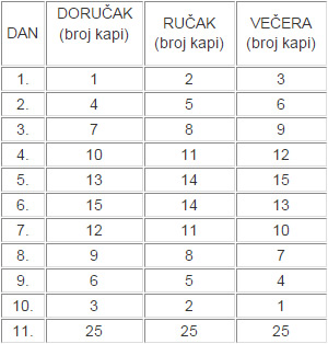 tablica-za-tinkturu-cesnjaka20 minuta prije svakog glavnog obroka uzmite predviđenu dozu tinkture razmućenu u malo domaćeg mlijeka ili vode. Nakon što dosegnete dozu od 25 kapi, nastavite je tako uzimati dok ne potrošite tinkturu do kraja. Preporučena doza je 30 ml.